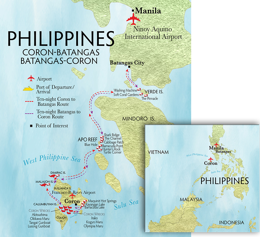 Die neuen Routen wurden sowohl für geschichtsinteressierte Wracktaucher als auch für Riffbegeisterte konzipiert und bieten einen erweiterten Zugang zu Coron, Apo Reef, Batangas und Anilao, wobei alle Tauchgänge von Beibooten aus durchgeführt werden, um maximale Flexibilität und Zugang zu den Tauchplätzen zu gewährleisten.